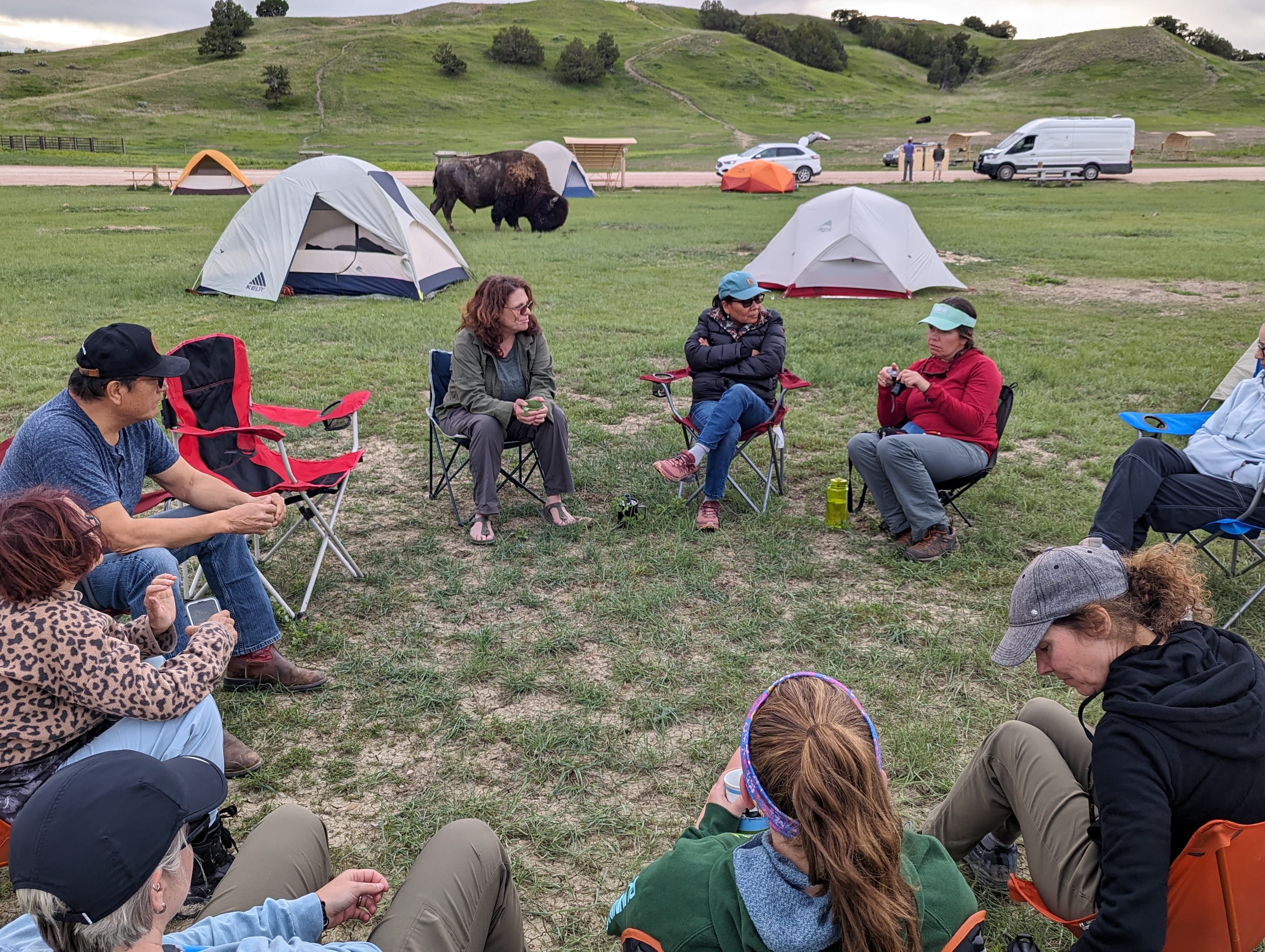 During the PD we camp at Sage Creek primitive camp ground that has a vault toilet but no running water or electricity. The event is partially outfitted which means meals are provided by an experienced back country cook and we bring in the water while participants provide their own gear. A limited amount of camping gear is available for a small rental fee. No camping experience required but a sense of adventure is!